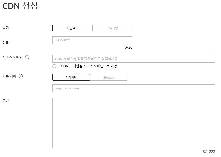 - 각 항목에 대한 설명은 바로 아래의 [CDN 생성] 에서 확인하실 수 있습니다.