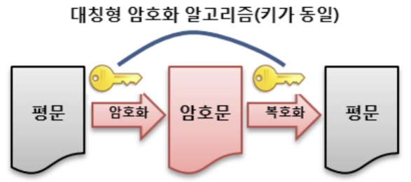 - 양방향 알고리즘 - 대칭형(비공개키 암호) 알고리즘 암호화, 복호화에 서로 동일한 키가 사용되는 암호화 방식으로 키를 비공개하는 것이 특징입니다.