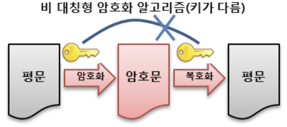 - 양방향 알고리즘 - 비대칭형(공개키 암호) 알고리즘