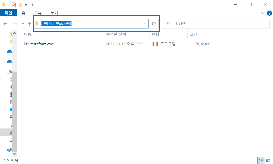 다운받은 파일을 /usr/user에 새로 만든 'tf' 폴더로 이동시킵니다.
