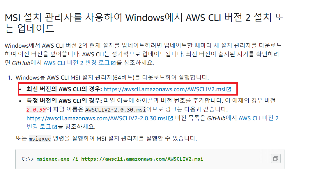 https://docs.aws.amazon.com/ko_kr/cli/latest/userguide/install-cliv2-windows.html 참고