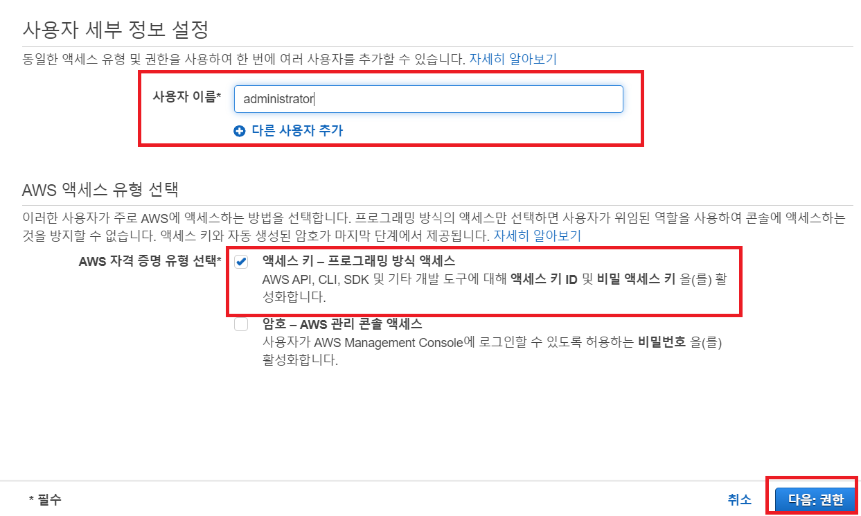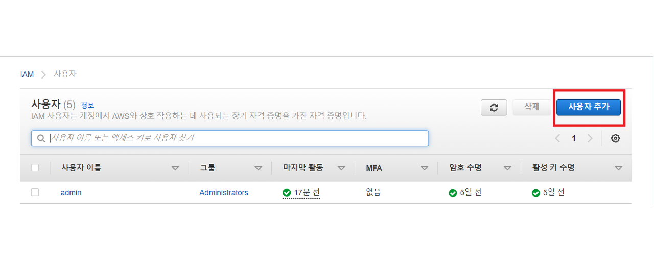 aws에 접속해 IAM으로 이동 후 사용자 추가를 해줍니다.