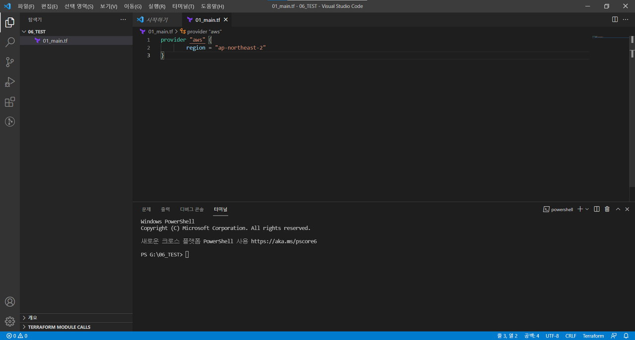 01_main.tf라는 파일을 만들고 자료처럼 내용을 적어줍니다.