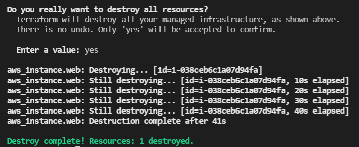 apply 명령어와 마찬가지로 'yes'를 입력해줘야 합니다.