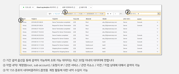 네이버클라우드 플랫폼 Cloud Activity Tracer 상세 기능