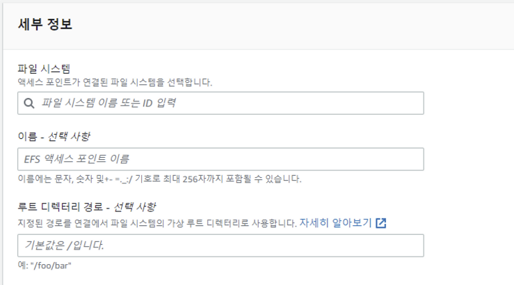 - 액세스 포인트가 연결될 파일 시스템 선택