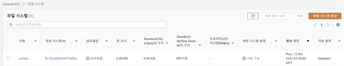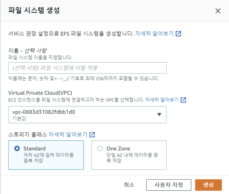 - EC2 인스턴스를 파일 시스템에 연결할 VPC 선택