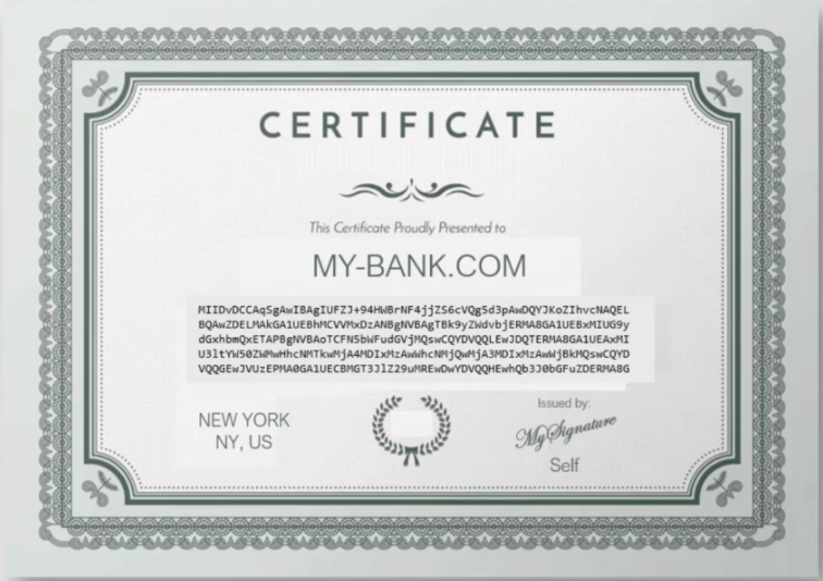 (실제 인증서는 데이터로 이뤄졌기 때문에 아래와 같은 이미지는 존재하지 않습니다.)