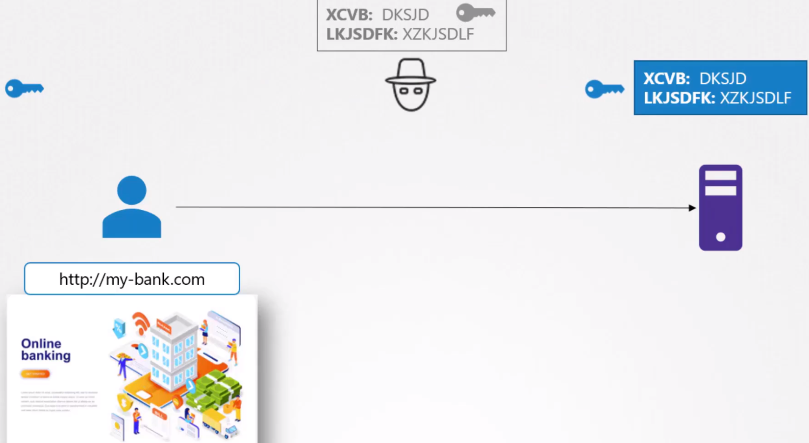 해커는 사용자가 온라인 뱅킹을 하기 위해 my-bank.com 에 접속하는 과정에서 해커가 만든 피싱사이트(정상적인 사이트와 완전히 동일한 사이트) 에 접속하도록 유도하고, 피싱사이트의 공개키를 사용자에게 넘겨 사용자의 대칭키를 탈취합니다.