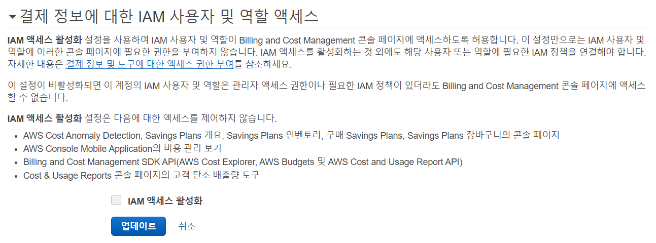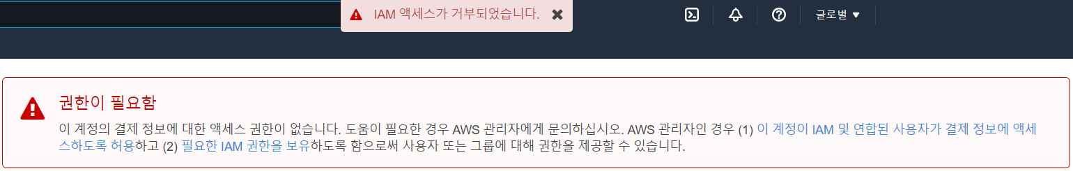 Aws billing 콘솔에서 권한이 없다고 나오는 경우가 있다.