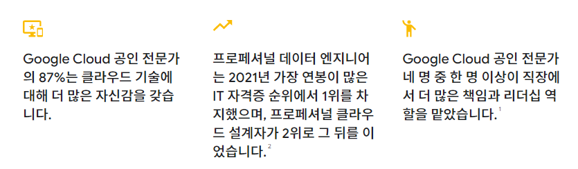 Google Cloud 공인 자격을 얻는 이유로 아래와 같은 답변들이 있었다고 합니다!