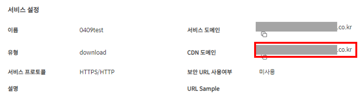 1) CDN 서비스 생성 후, 생성한 CDN 도메인을 확인합니다.