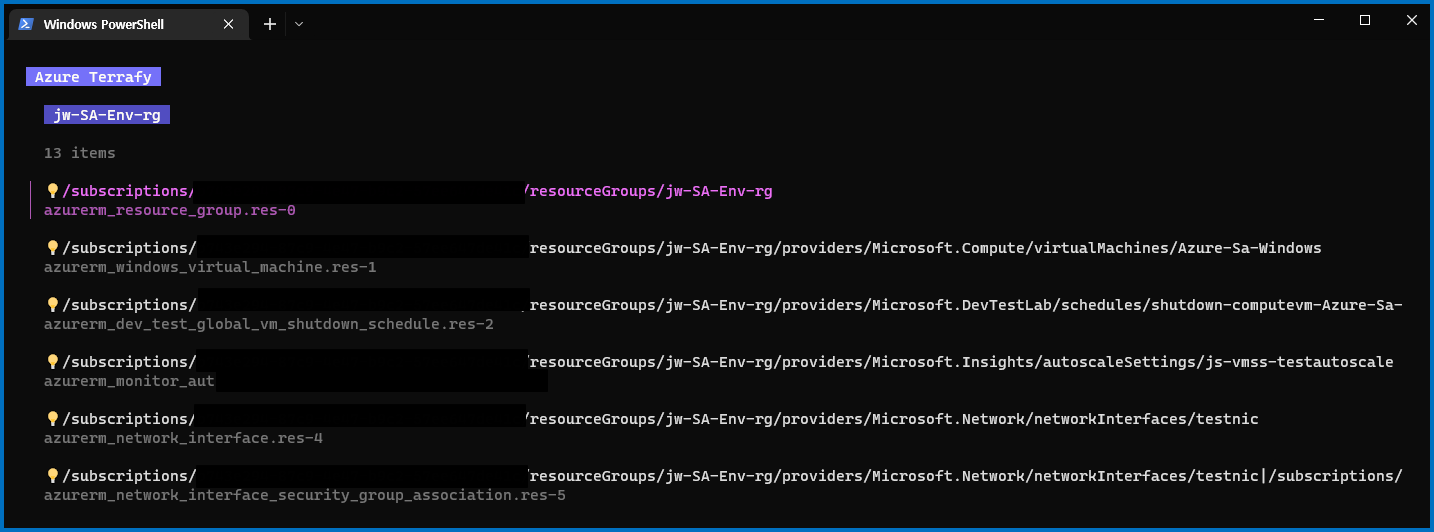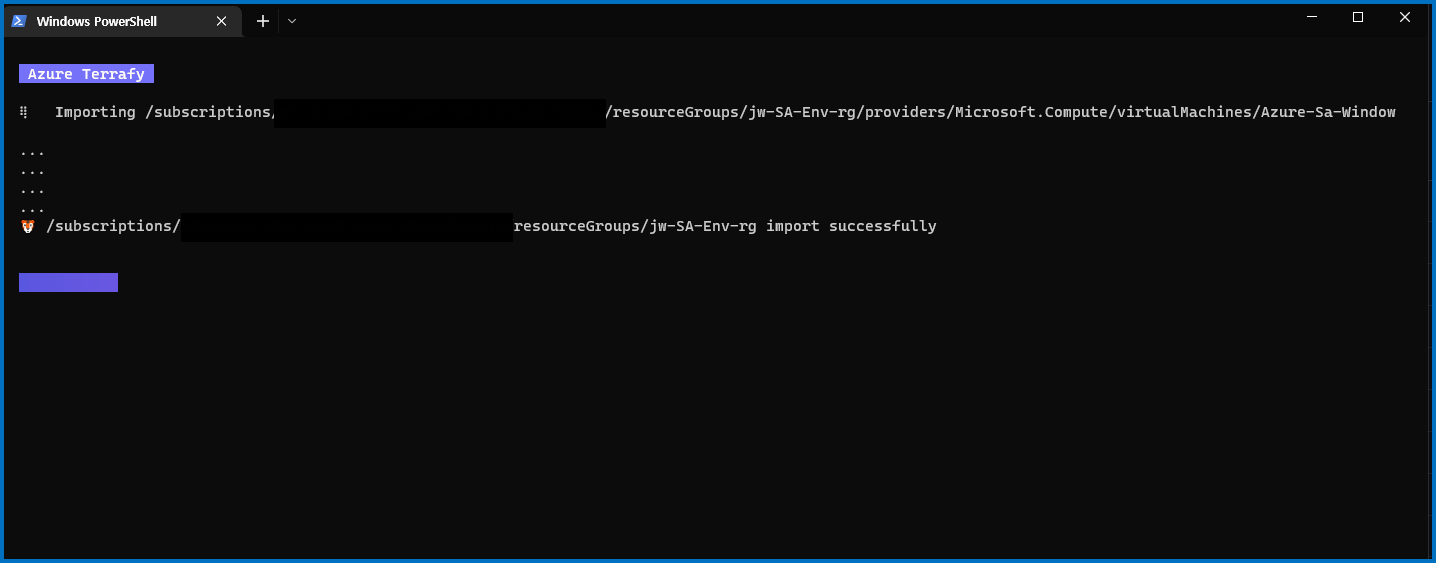 PS C:\aztfytest> aztfy resource-group jw-SA-Env-rg